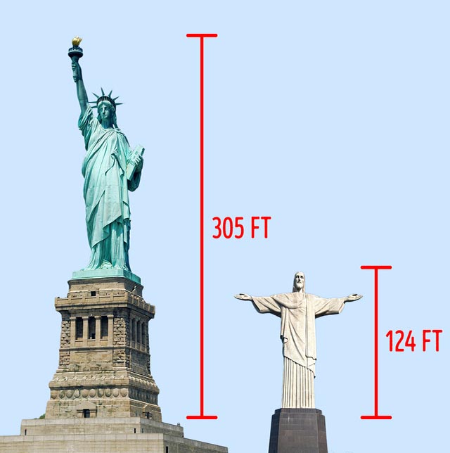 Tượng chúa Kitô cứu thế tại Rio de Janeiro thậm chí còn thấp hơn bệ của tượng nữ thần tự do. Chiều cao của bức tượng tại Brazil tính cả bệ đứng là 38 mét, trong khi đó tượng Nữ thần tự do cao 93 mét.