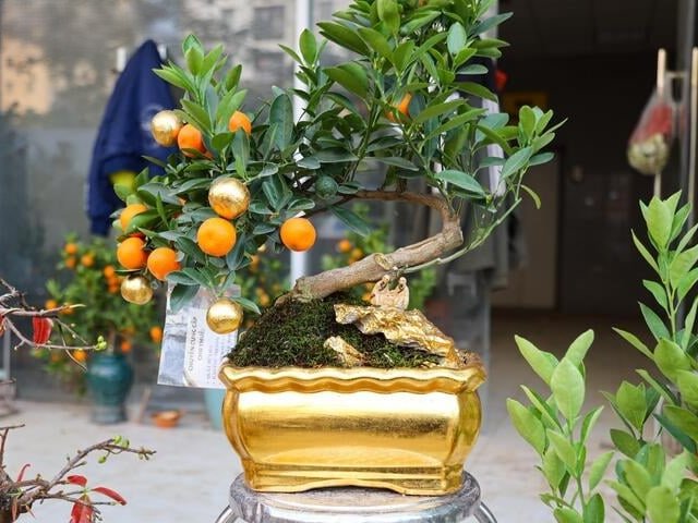 Những cây quất Tứ Liên không chỉ được trồng trong chậu dát vàng mà ngay cả quả cũng được biến hóa, tạo điểm nhấn "có một không hai".