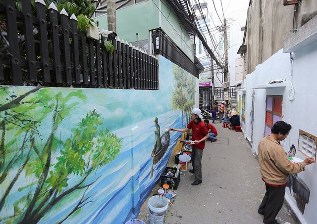 Giữa trung tâm thành phố, nhiều con hẻm nhỏ đang được vẽ những bức tranh đặc trưng của Đà Nẵng để phục vụ cộng đồng và khách du lịch.