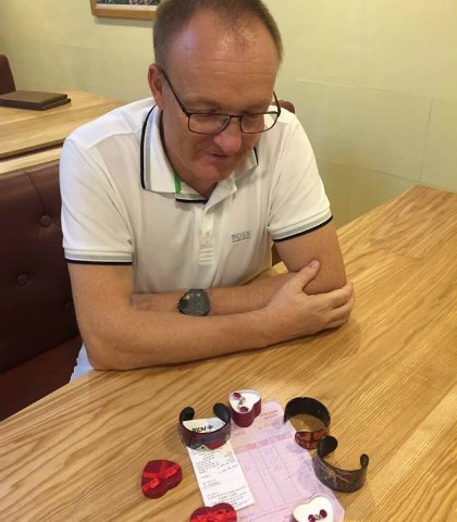 Roland mua ba chiếc vòng, hai đôi bông tai giá 1.100 USD ở cửa hàng mỹ nghệ huyện Phú Xuyên mà không biết nó làm bằng nhựa và giả bạc.