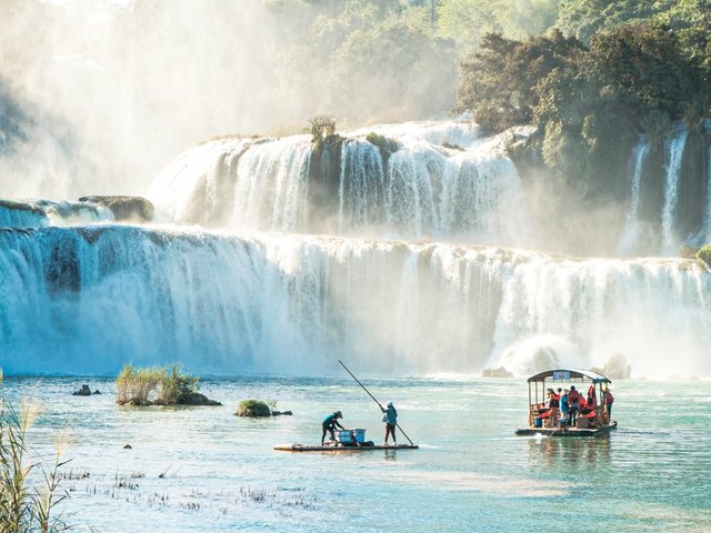 Tháng 11, thác Bản Giốc ở Cao Bằng khoác lên mình sắc nước xanh ngắt, trời se lạnh, cảnh quan hùng vĩ thu hút du khách đến tham quan.