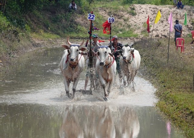 Ngày hội náo nhiệt, đậm dấu ấn văn hóa Khmer với 24 đôi bò tranh tài tại những thửa ruộng phía sau chùa Rô.