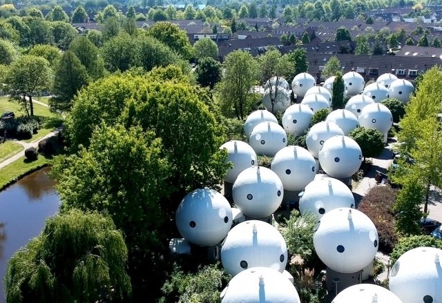 Làng Bolwoningen gồm những ngôi nhà hình khối cầu xây theo trường phái siêu thực, lạ mắt.