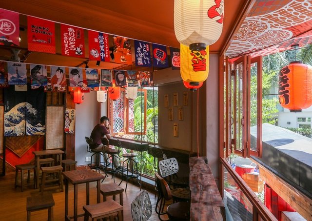 Quán được thiết kế nhằm tái hiện một khu phố cổ ở Nhật, cho khách chọn hạt cà phê rồi tự pha chế để ra món đồ uống như ý.