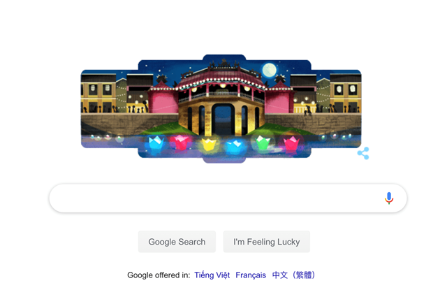Ngày 16.7, Google Doodles lần đầu tiên vinh danh đô thị cổ Hội An trên trang chủ Google tiếng Việt (google.com.vn), một di sản văn hóa thế giới và thành phố quyến rũ nhất thế giới 2019 theo độc giả tạp chí du lịch nổi tiếng thế giới Travel + Leisure bình chọn trong tháng 7 này.