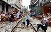 Không chỉ ngồi uống cà phê sát đường tàu, khách du lịch nước ngoài còn liều lĩnh nhảy ra đường ray chụp hình ngay trước đầu đoàn tàu đang rầm rập chạy đến.