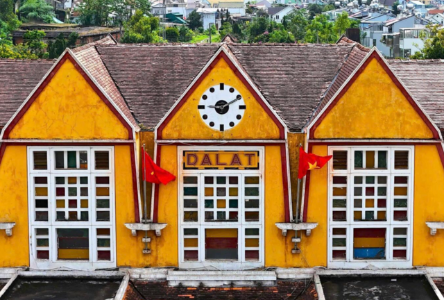 Nhà ga giữa trung tâm Đà Lạt (Lâm Đồng) gần 100 tuổi với lối kiến trúc độc đáo, mang ý nghĩa mô phỏng ba đỉnh của núi Langbiang và những mái nhà rông Tây Nguyên.