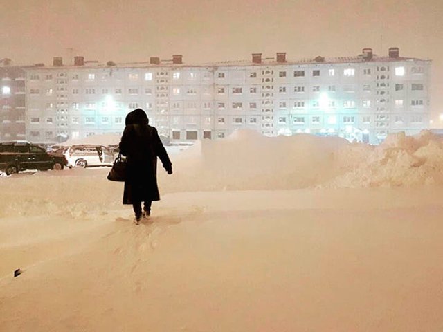 Cả thành phố Norilsk, Nga, chìm trong một màu trắng xóa của tuyết khi nhiệt độ ở đây giảm mạnh.