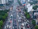 Dòng phương tiện ken đặc đoạn đường, xe phải nhích từng chút.