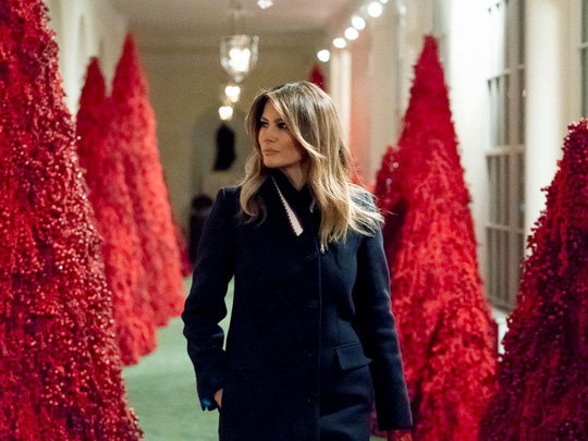 Đệ nhất phu nhân nước Mỹ Melania Trump và những cây thông màu đỏ. Ảnh: TWITTER