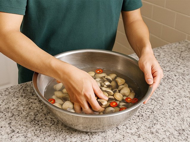 Nếu bạn muốn làm sạch ngao nhanh nhưng vẫn tươi lâu, hãy thử dùng nước vo gạo – bí quyết dân gian được nhiều bà nội trợ ưa chuộng.