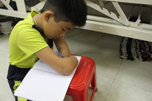 Cậu bé không tay chân học viết chữ bằng mỏm cụt