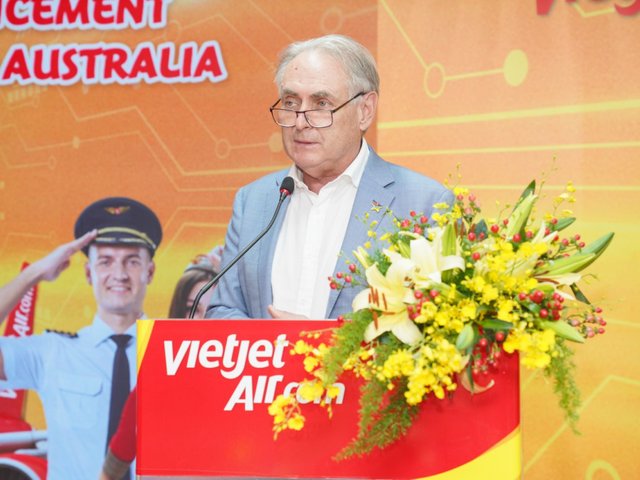 Bộ trưởng Thương mại và Du lịch Australia Don Farrell chúc mừng Vietjet với các đường bay mới mở kết nối Melbourne, Sydney với TPHCM và các đường bay mà hãng sẽ tiếp tục khai trương trong thời gian tới bao gồm đường bay thẳng đầu tiên từ Việt Nam đến Brisbane.