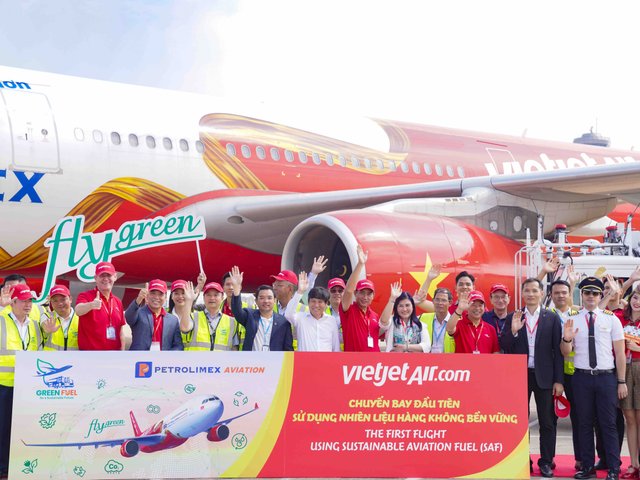 Vietjet tiên phong khai thác chuyến bay đầu tiên sử dụng nhiên liệu hàng không bền vững SAF nạp tại Việt Nam