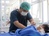 Người nhà mang bé đến thầy lang gần nhà nhưng do tình trạng quá nặng, không thể điều trị được nên bé được đưa đến Bệnh viện Thống Nhất (Đồng Nai) trong tình trạng lơ mơ. Sau đó, bé được các bác sĩ đặt nội khí quản, bóp bóng và chuyển lên Bệnh viện Chợ Rẫy. Tại Bệnh viện Chợ Rẫy, bệnh nhi được thở máy nhưng tình trạng không cải thiện nên chuyển Bệnh viện Nhi Đồng 1.