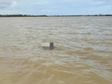 Người thân ngồi bên bờ sông chờ tin tức ba bố con.