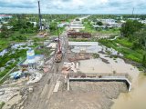 Lực lượng công nhân đang thi công các hạng mục như xử lý nền đất yếu, đúc dầm, cọc, đào đắp nền đường…