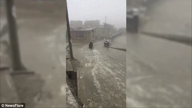 Chú bò biểu diễn màn “trượt băng” có một không hai do thời tiết giá rét khiến mặt đường đóng băng.