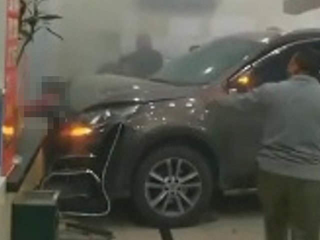 Người phụ nữ đang giao dịch ở quầy thì bị một ôtô lao qua cửa kính đâm trúng, nạn nhân sau đó qua đời ở bệnh viện.
