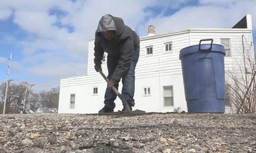 Cậu bé Mỹ được khen ngợi khi vá ổ gà trên đường