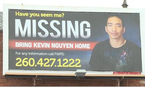 Bà của Kevin Nguyen bỏ hàng trăm USD đăng thông báo tìm người cháu bị mất tích sau một cuộc cãi vã tại quán bar ở bang Indiana, Mỹ.