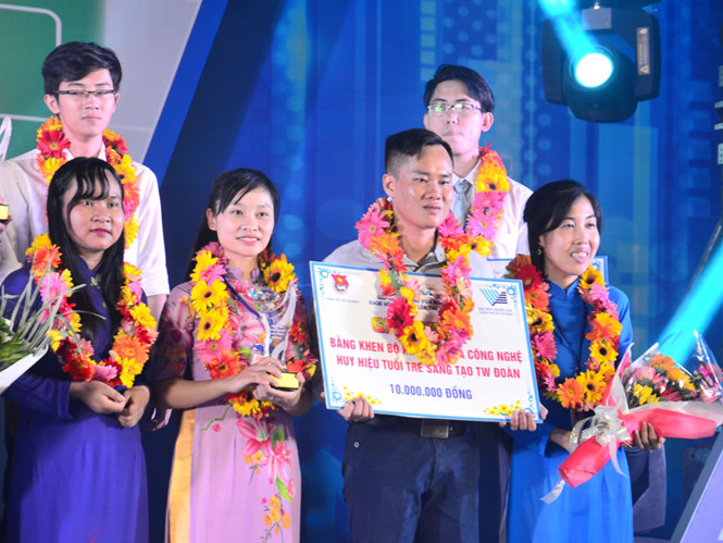 Lộc (hàng đầu, thứ 2 từ phải qua) nhận giải nhất Giải thưởng Eureka 2018, bằng khen của Bộ KH-CN và Huy hiệu Tuổi trẻ sáng tạo của T.Ư Đoàn tối 24.11 - NỮ VƯƠNG