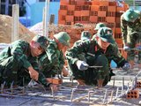 Những chiến sĩ cẩn thận từng khâu trong quá trình xây nhà.