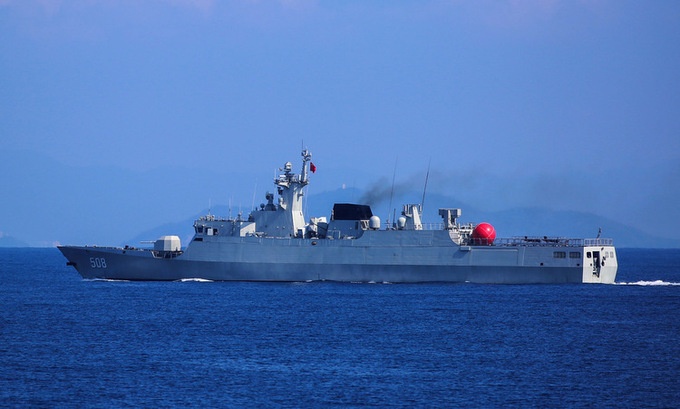 | Tàu hộ vệ Type-056 Trung Quốc ngoài khơi đảo Hải Nam hồi tháng 8/2019. Ảnh: 81.cn. |