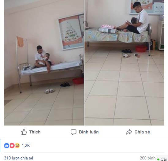 Theo như lời kể, chủ nhân của dòng chia sẻ gặp đôi vợ chồng trẻ ở bệnh viện. Anh chồng bế trên tay thằng bé con khoảng chừng 11 tháng tuổi bị sốt cao, phải truyền nước. Một tay anh chồng bế con, tay kia cầm chai nước truyền rồi lau chùi, chăm con, sắp xếp đồ đạc gọn gàng một chỗ. Ai cũng nhầm tưởng anh chỉ chăm con một lát chờ vợ vào bệnh viện thay.