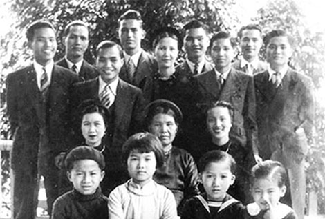 Ảnh chụp gia đình, bà Đinh Thị Tính ngồi ở giữa, đầu vấn khăn.