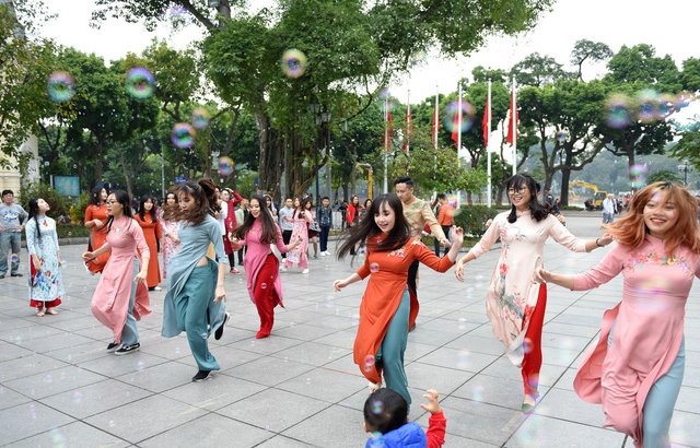 30 sinh viên diện áo dài nhảy đón xuân bên hồ Hoàn Kiếm