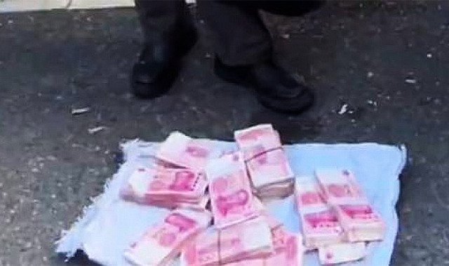 Người đàn ông Trung Quốc mang 200 nghìn nhân dân tệ (730 triệu đồng) ra chợ, xếp từng chồng trên mặt đất để cho không, dù biết là tiền thật nhưng không ai dám lấy.