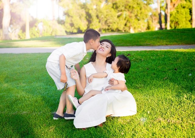 Nguyễn Hồng Nhung bên hai con ở Mỹ