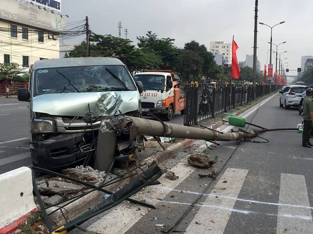 Vụ tai nạn xảy ra vào rạng sáng nay (18/8), khi chiếc xe ô tô 16 chỗ đang lưu thông từ hướng nội thành ra khu vực bến xe Nước Ngầm mất lái, đã đâm vào cột điện gắn đèn chiếu sáng gãy, chắn ngang đường Giải Phóng khiến giao thông ùn tắc kéo dài vào giờ cao điểm.