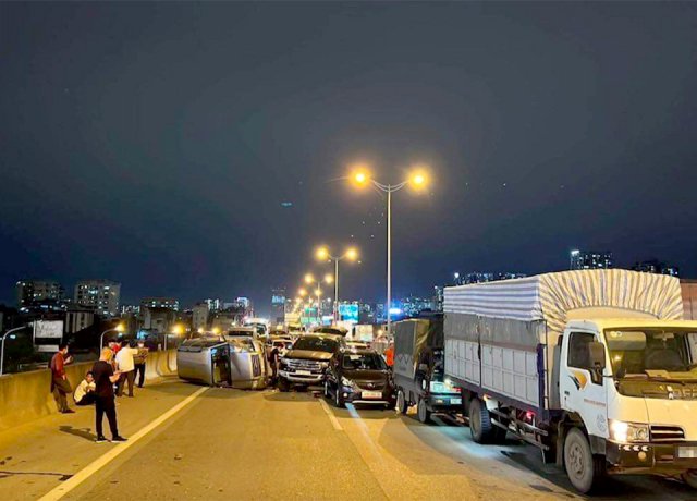 Khoảng 19h40’ tối nay (15/5) trên đường vành đai 3, đoạn tiếp giáp địa bàn quận Thanh Xuân và huyện Thanh Trì (Hà Nội) xảy ra vụ tai nạn giao thông (TNGT) nghiêm trọng liên hoàn giữa 5 xe ô tô.
