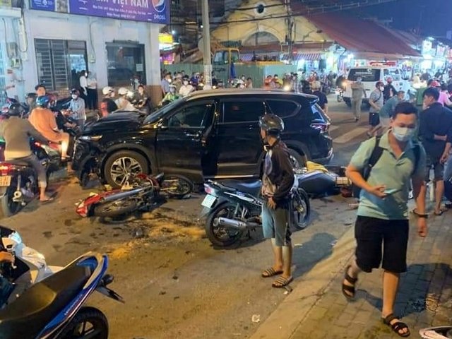 Trưa 6/5, tài xế điều khiển xe 7 chỗ gây ra vụ TNGT nghiêm trọng khiến 10 xe gắn máy hư hỏng, làm 4 người bị thương nặng, đã ra Công an trình diện với Công an TP Thủ Đức và tiến hành kiểm tra nồng độ cồn, ma túy…