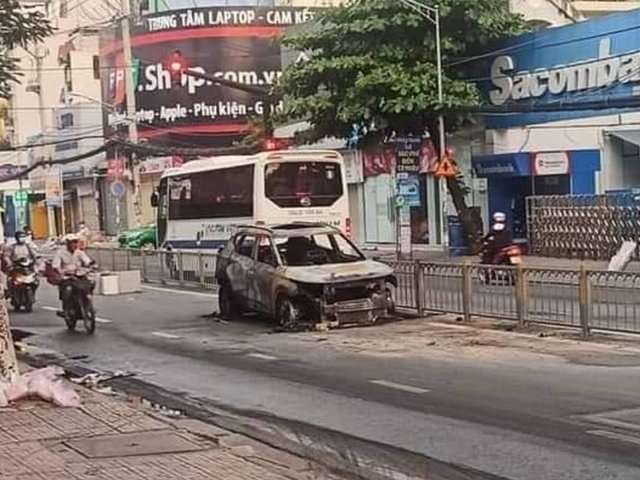 Trang 1Xế hộp cháy trơ khung, tài xế thoát hiểm