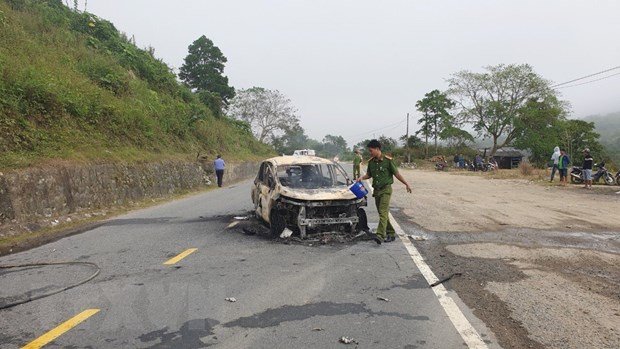 Xe ôtô 7 chỗ ngồi biển kiểm soát 81A-192.15 khi đến đoạn Km 1347+200 đường Hồ Chí Minh, thuộc địa phận huyện Nam Giang, tỉnh Quảng Nam bất ngờ phát nổ, khiến xe bị thiêu rụi và 2 người tử vong.