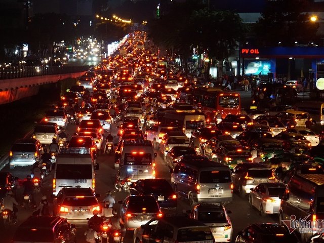 Chiều tối nay, cửa ngõ sân bay Tân Sơn Nhất kẹt xe nghiêm trọng, nghìn xe xếp kín không hở xăng-ti-mét nào.