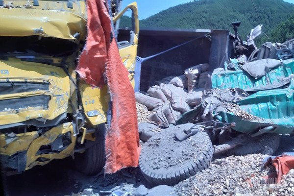 Đi ngược chiều nhau với tốc độ cao, hai xe tải tông trực diện khiến tài xế 2 xe bị thương nặng.