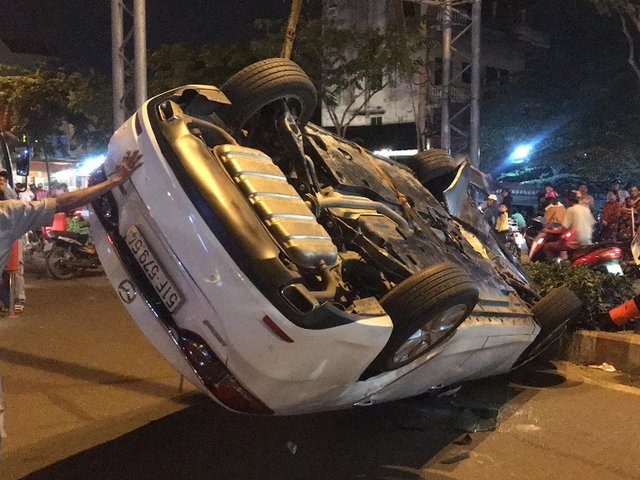 Lái tô tô lộn vòng rồi lật ngửa giữa đại lộ ở Sài Gòn, nam tài xế phản đối khi công an đưa về phường đo nồng độ cồn, kiểm tra ma túy.