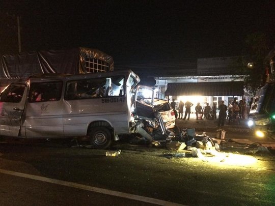 Chạy trên quốc lộ qua tỉnh Bình Thuận, xe giường nằm tông vào dải phân cách rồi lật ngang khiến 2 người chết và gần 20 người bị thương.