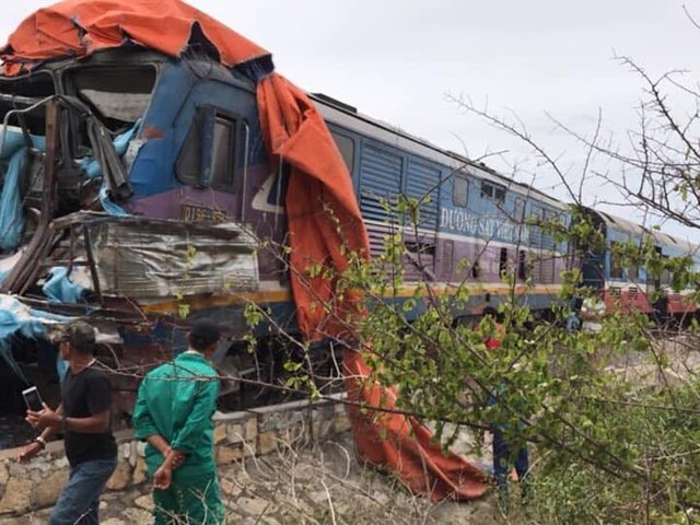 Tàu SE5 hành trình Bắc - Nam khi qua tỉnh Ninh Thuận đã tông vào xe tải khiến 2 người trên xe tải bị thương nặng.