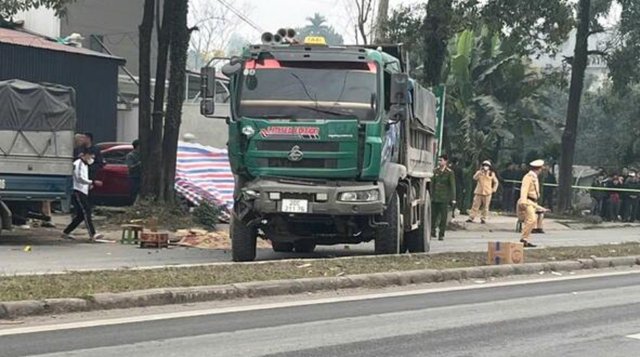 Vụ tai nạn giao thông giữa xe ben và xe tải ở gần đường tròn Tân Long (Thái Nguyên) khiến 2 người tử vong, trong đó có một cán bộ CSGT đang làm nhiệm vụ.