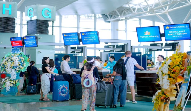 Vietnam Airlines vừa chính thức khai trương đường bay thẳng Hà Nội - Phnom Penh và trở thành hãng hàng không duy nhất của Việt Nam khai thác đường bay thẳng giữa thủ đô hai nước.