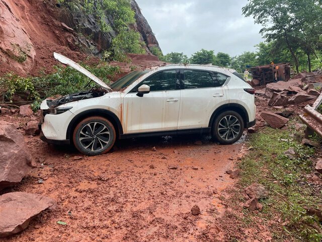 Trong lúc đang di chuyển trên quốc lộ 6 (địa phận tỉnh Sơn La), 2 chiếc ô tô bị lượng đất đá lớn đè trúng khiến 8 người trên xe bị thương nhẹ.