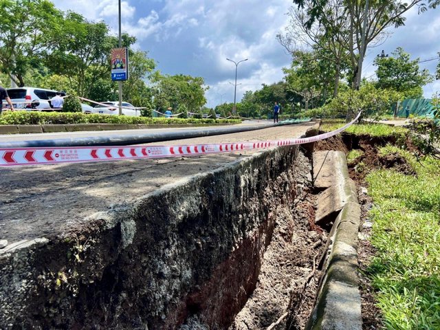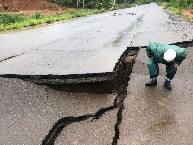 Chiều 5/8, UBND TP Bảo Lộc (Lâm Đồng) cho biết, sụt lún, nứt đất đã gây hư hỏng nặng nền mặt đường tại khu vực Km 7+000 - Km7 8+300 trên tuyến tránh TP Bảo Lộc, đấu vào Quốc lộ 20.