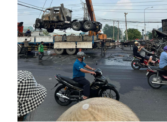 Khoảng 4h ngày 10/7, hai xe container khi băng qua ngã tư ở tỉnh Bình Dương đã va chạm đối đầu, sau đó lửa bốc cháy ngùn ngụt.