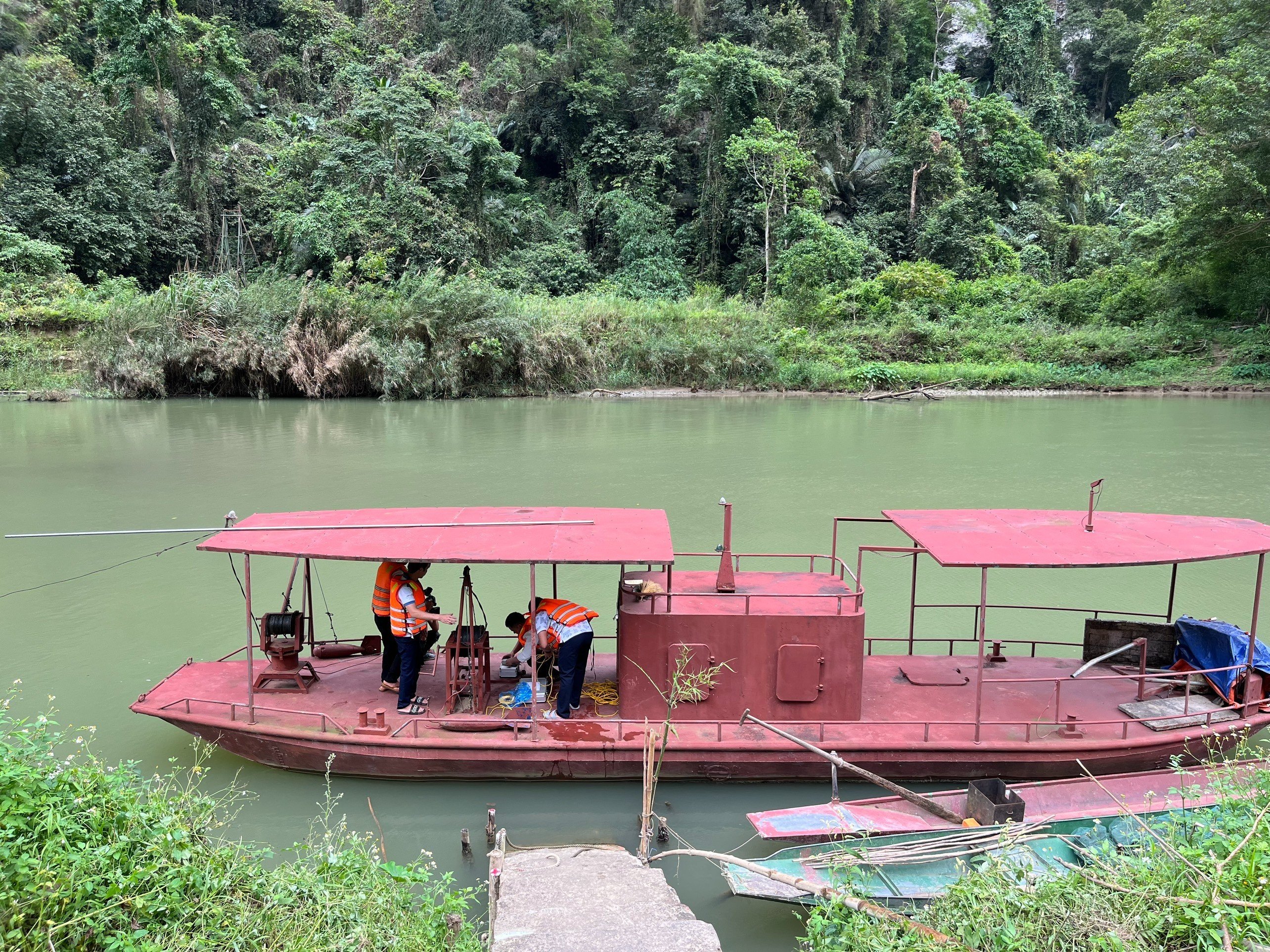 Các cán bộ của Trạm Khí tượng thủy văn Đầu Đẳng thuộc Đài Khí tượng thủy văn khu vực Việt Bắc làm nhiệm vụ đo nước |
