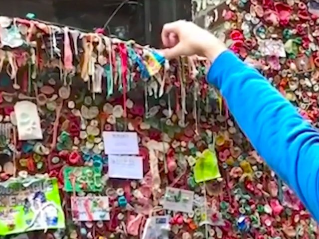 Nhiều du khách thách nhau liếm hoặc cắn những mảng bã kẹo cao su trét kín bức tường trong hẻm nhỏ tại thành phố Seattle, Washington, Mỹ.